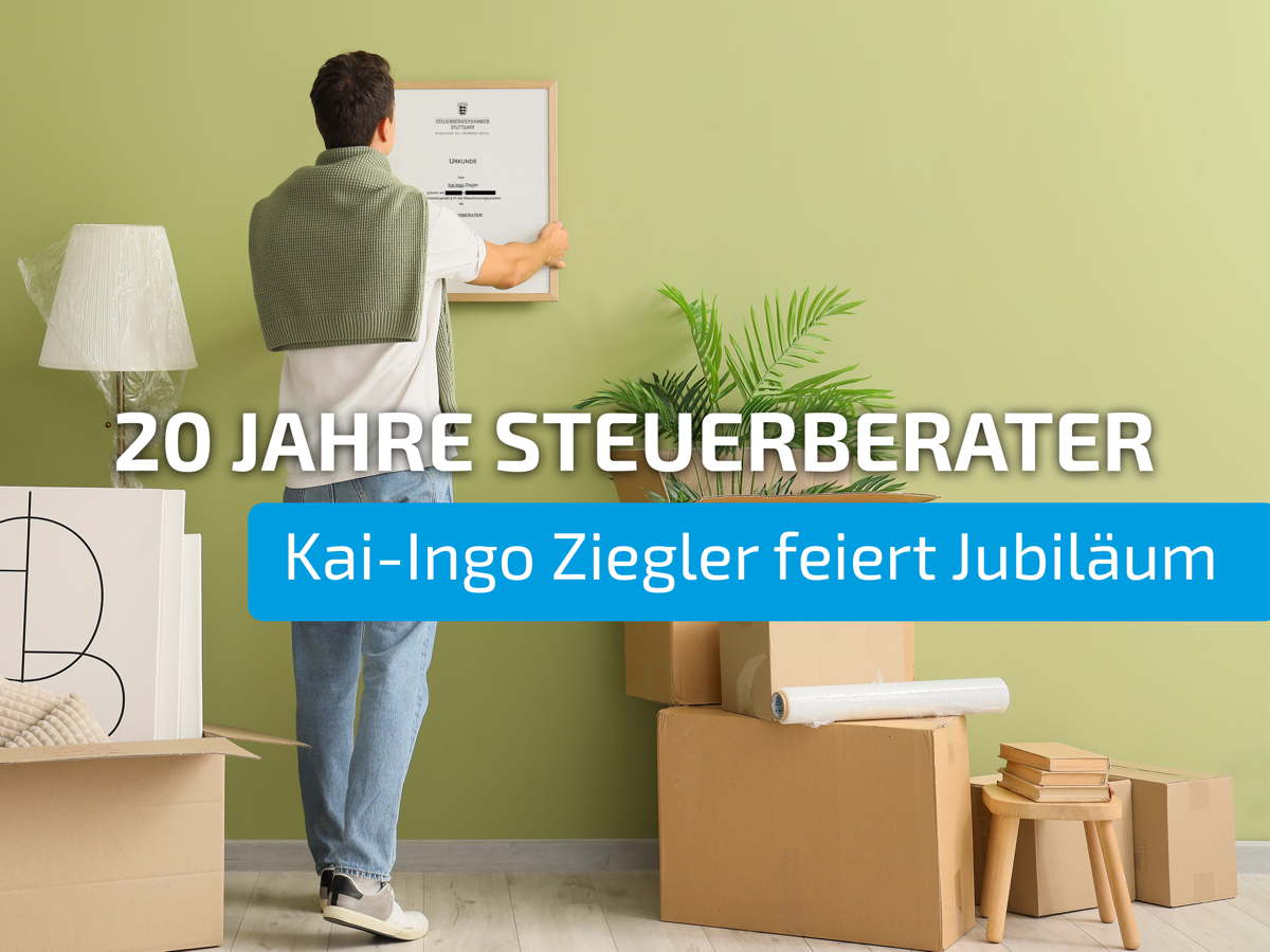 Vor kurzem durfte unser Partner Kai-Ingo Ziegler auf 20 Jahre Berufstätigkeit als Steuerberater zurückblicken. Dankbar für alle Wegbegleiter, das Vertrauen von Partnern und Mandanten sowie die vielen gemeinsamen Erfolge.